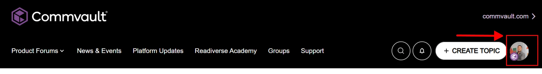 At the top right of the Community, next to ‘Create Topic’ you’ll see either a ‘Login’ button (if you haven’t already logged in or your profile overview.)