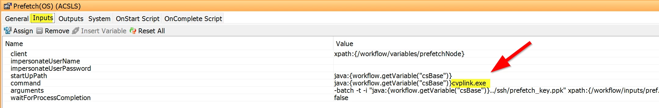 If the command ends on .exe (funny), the program suffix is automatically removed by the WorkFlow,