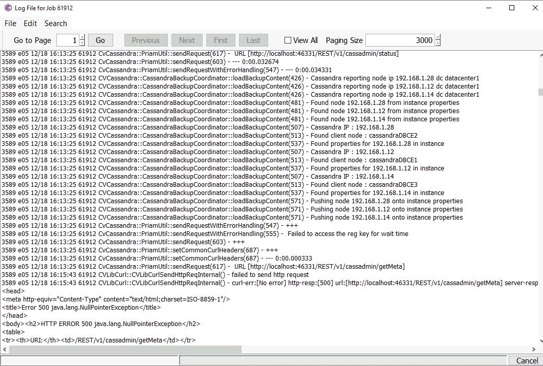 We have configured the Cassandra backup and initiated the backup job. The job status shows Running, but the data is not being transferred.