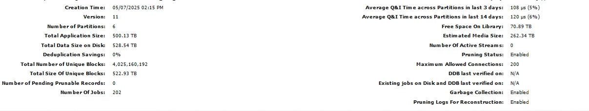 Based on the screenshots and details provided, the HSX cluster entered ready mode after reaching 85% utilization, following which the retention policy was changed from 30 days/1 cycle to 30 days/0 cycles. However, DDB deduplication savings dropped from 33% to 0%, and no space was reclaimed even after running data aging and reclaim jobs.