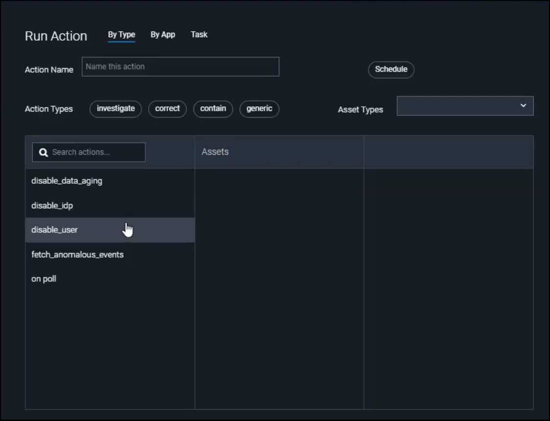 Available actions can be automatically trigger to run on any event or integrated with broader playbooks.
