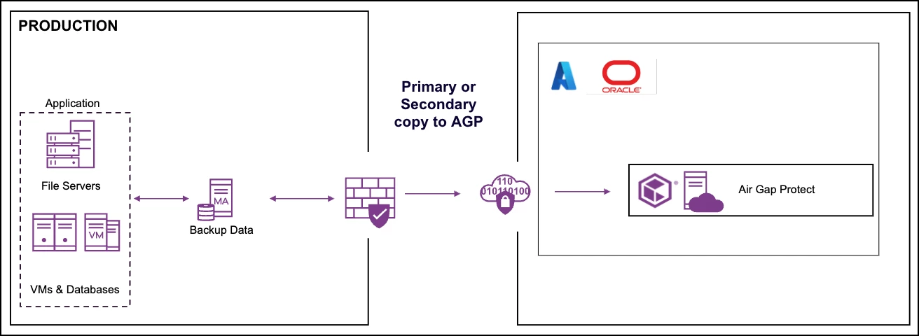 Air Gap Protect for OCI: Air-gapped, immutable cloud storage for OCI is an excellent choice for secondary or tertiary backup copies. It makes them inaccessible to bad actors and limits an attacker's potential for infection, modification, or deletion.