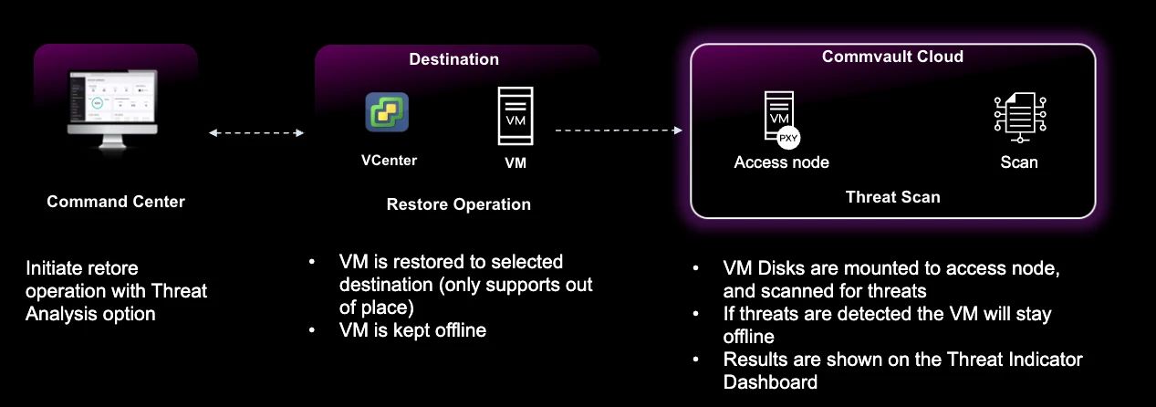 Threat Scan Support for VMs: Scan VM backups for potential malware infection so you can make informed response and recovery actions. Quickly find threats within backups and quarantine them so you can recover clean systems and data faster while avoiding reinfection.