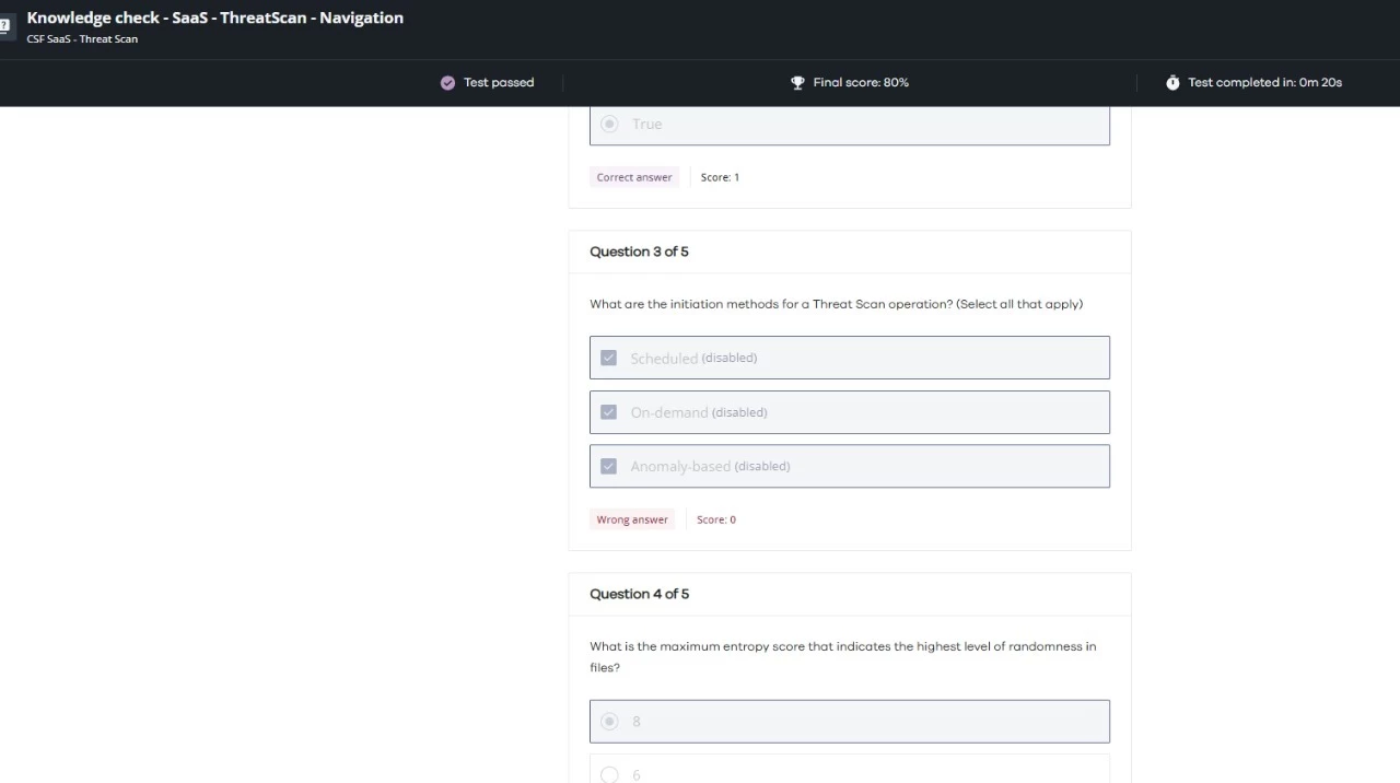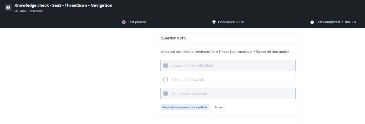 In my first attempt i selected the option that says Threat Scan can be scheduled as David noted that was marked incorrect (see screenshot below).