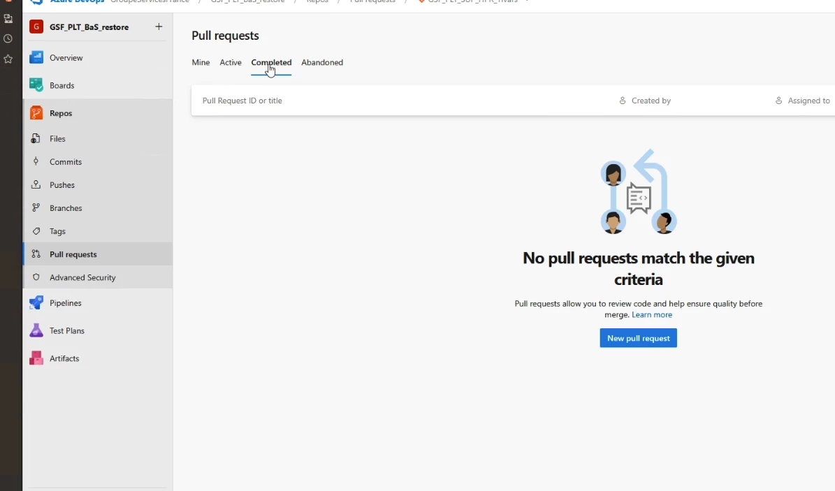 In the production devops, we do have history of Pull Request, but when we restore out of place, we loose all the history