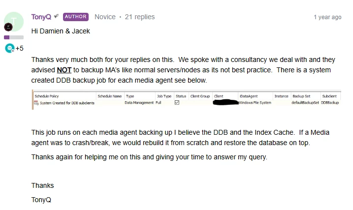 Regarding the missing DDB Sub-Client on the second Media Agent, please verify whether it is associated with a Storage Policy that has deduplication enabled. Only in that case will the system create a DDB Sub-Client, and it will back up just the Deduplication Database, which is essential for any deduplication-enabled operations.