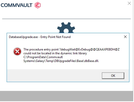 Commvault Upgrade failed (DatabaseUpgrade.exe - Entry Point Not Found)