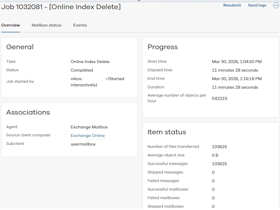 From what I know, Commvault uses only forever / infinite retention for O365 services (retention rules only apply to deleted data backups). So, that's why I'm asking in case of deleting an Exchange Online mailbox backup, does the backend backup data also get deleted from cloud storage, or just the index?