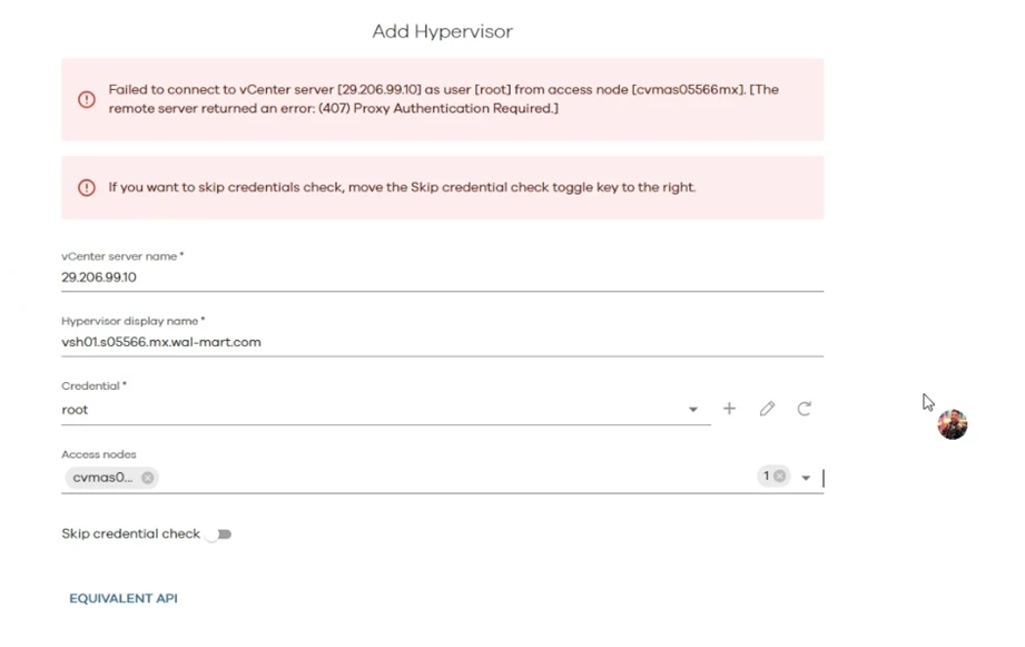 I can't add the hypervisor. We've already checked the communications and the credentials are correct. Does anyone have any idea why? The Commvault version is 11.34.28.