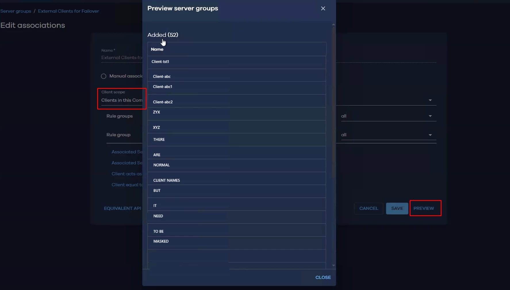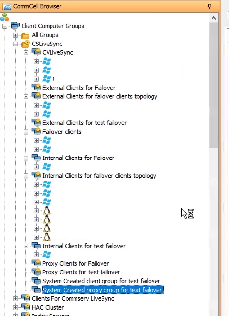 What concerned us was that nothing was displayed for the "External Clients for Failover" group and the "Proxy Clients for Failover" group. We repeatedly refreshed, restarted the console and tried the "Push Network Configuration" option, but nothing helped.