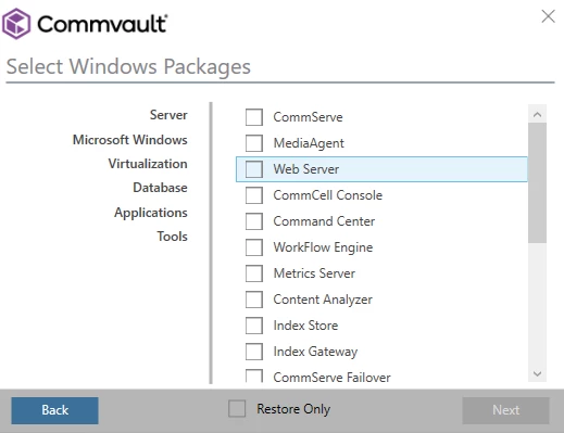 If you did not install the Web Server during the CommServe installation, or if you want to install additional Web Servers on other computers,