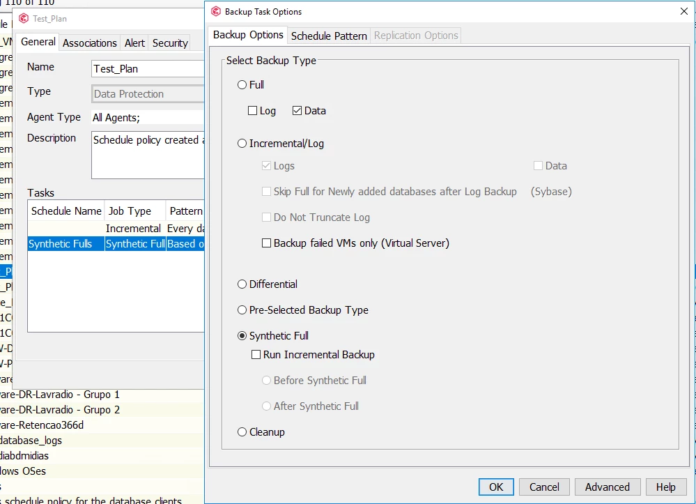 If the most specific database policy only has just one task, which is precisely the task that commands the Incremental backup, where is Commvault configuring the task to run a Full backup? Has Commvault configured the Full backup task in the generic policy (Test_Plan)?