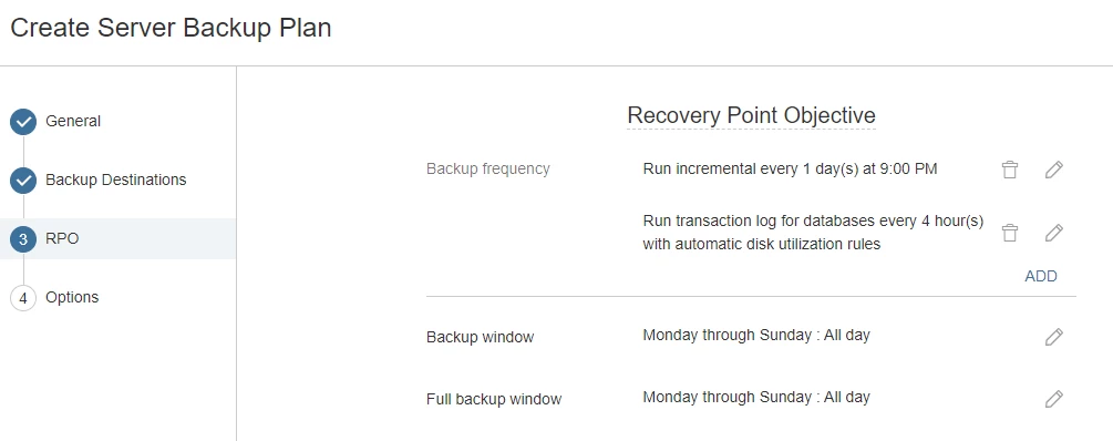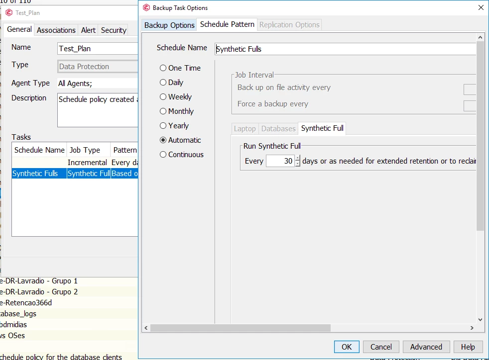 According to my research, Commvault creates two scheduling policies to satisfy the RPO.