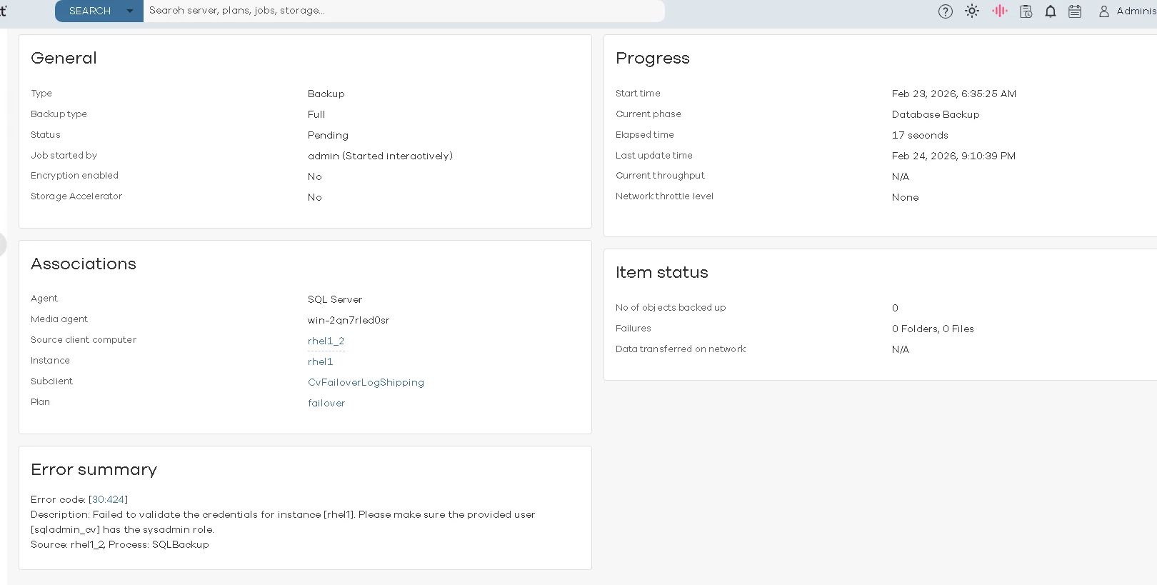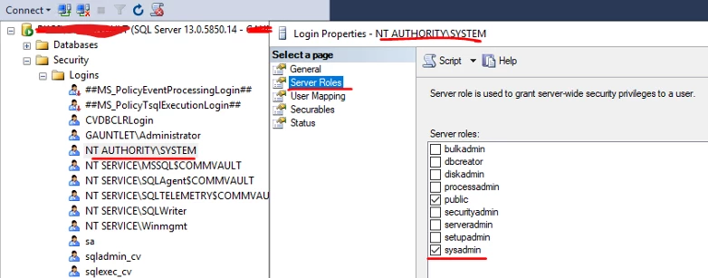 Verified the SQL login configured in Commvault.