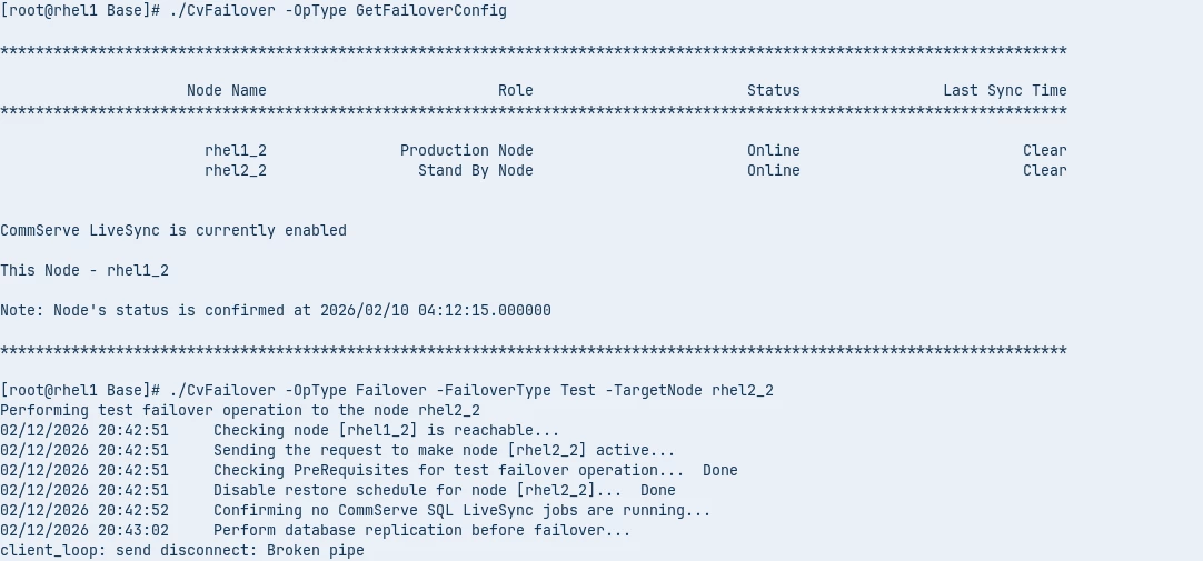 We are facing an issue during LiveSync failover in our Commvault Linux installation.