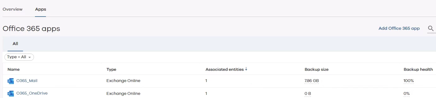 When I do the same task to add my One Drive it adds but it appears as Type Exchange Online. - see print screen below.
