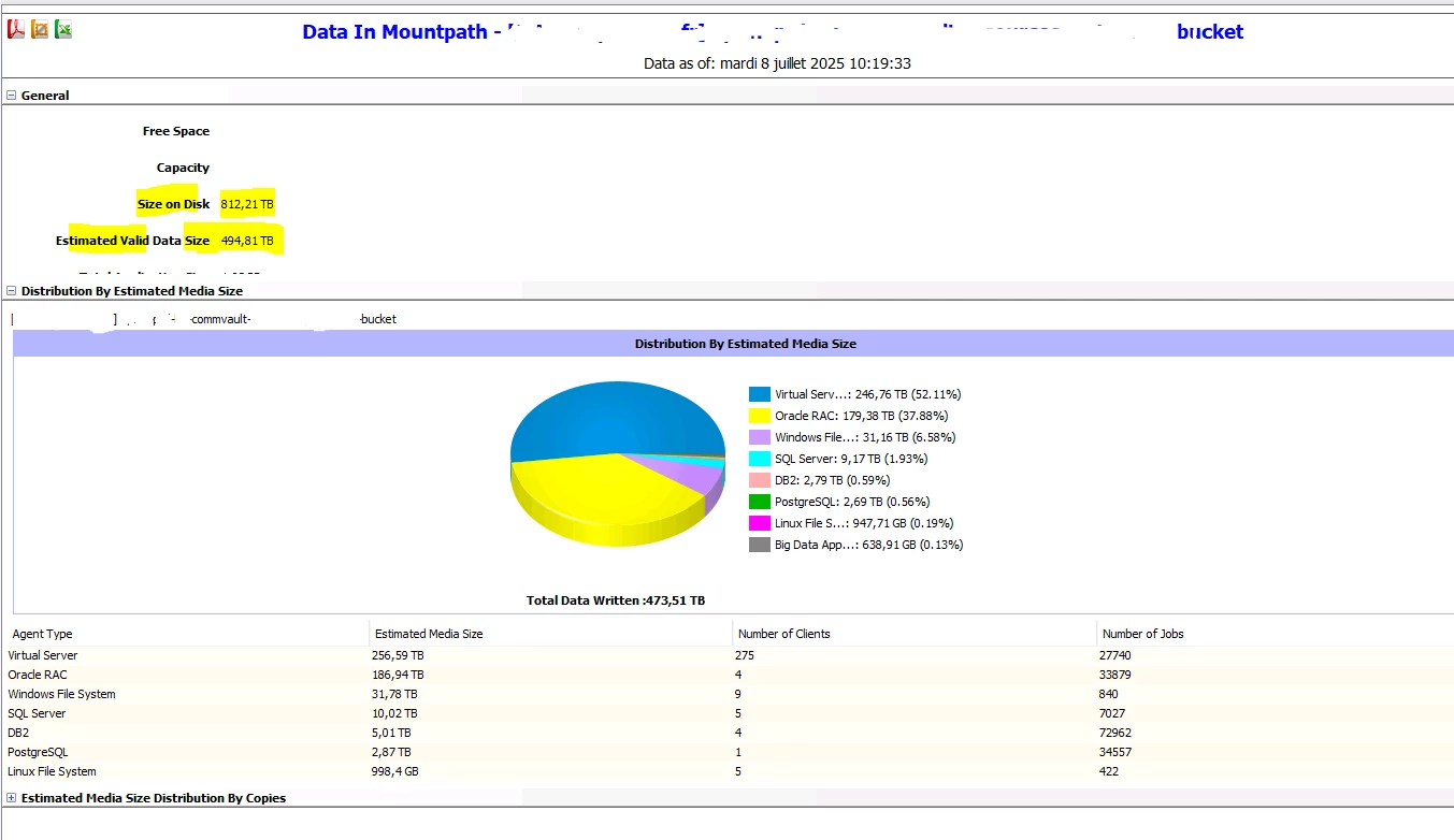 Size on Disk : The sum of the total unique data size + (metadata size + nondeduplicated data) for all backup jobs.
