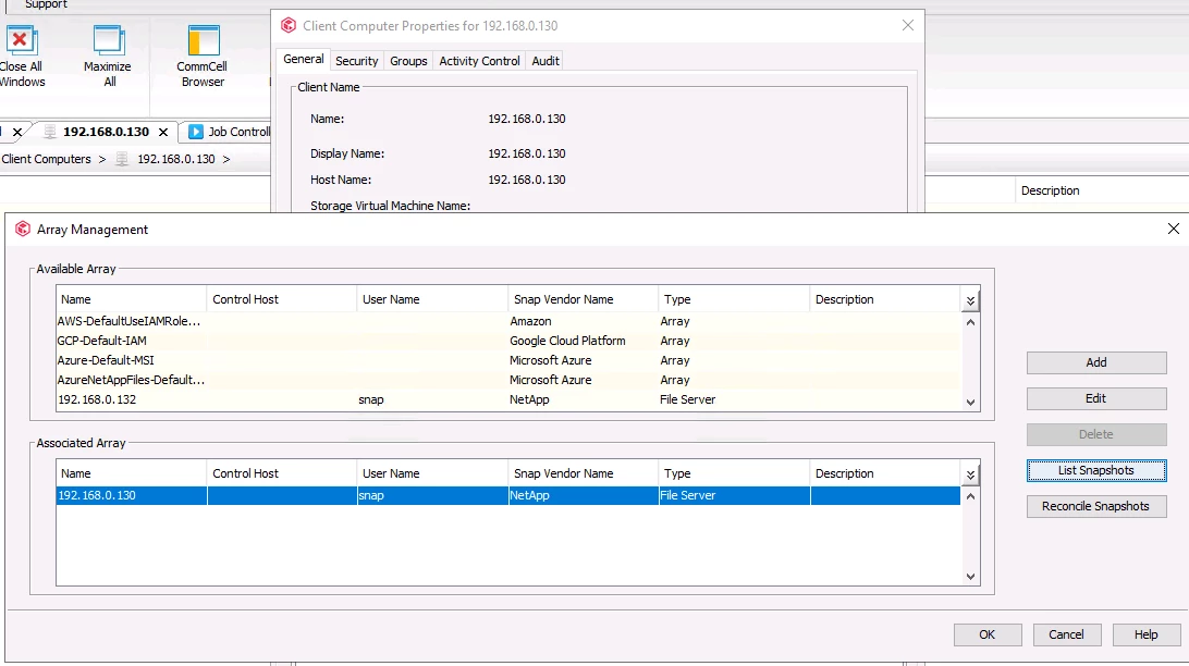 I would like to ask how it is possible to re-associate the NDMP client with a newly added NetApp storage array. There is no option to do it—I can only add a new array to the list of available arrays. What am I missing?