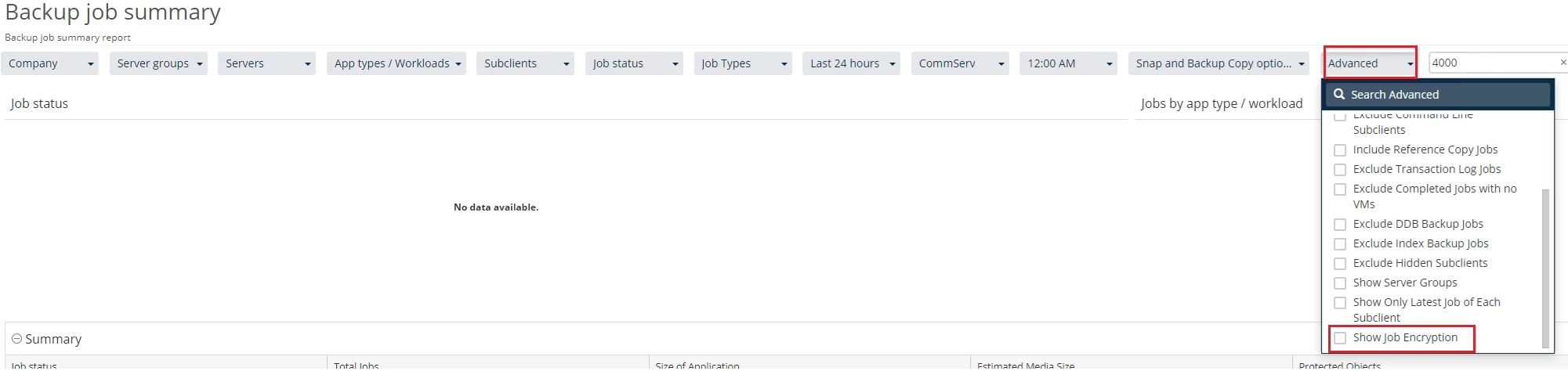 The Backup Job Summary should allow you to check on the Job Encryption of each Job