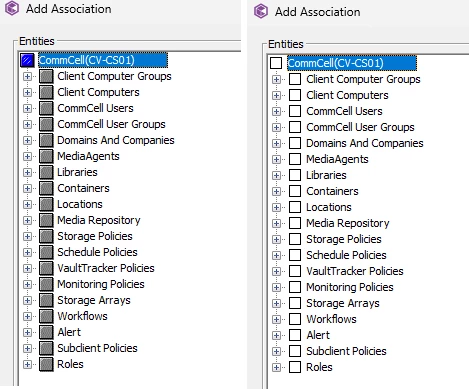 My problem is that I can’t select only the commserve as Association in the user group. The user shouldn’t be able to see more than the commserve object.
