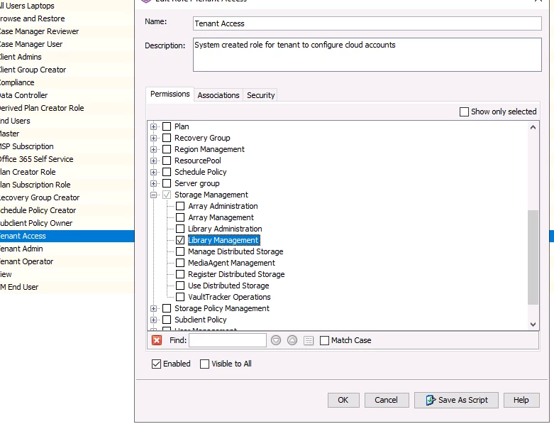 When creating a new cloud storage, I am asked to enter the media agent. However since I am in a tenant(company) account, I do not have access to the infra server like commserve and media agents. How can I give minimum access to the tenant so that the tenant can add the storage?