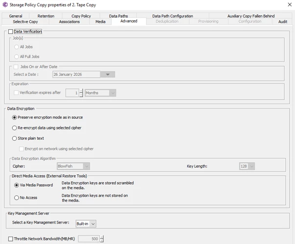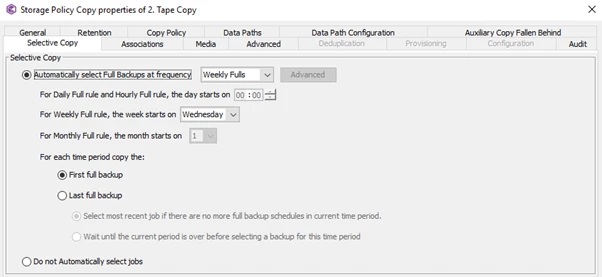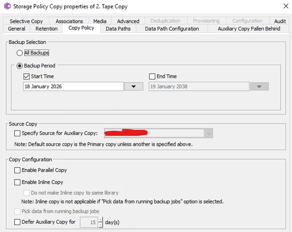 Each week, I have to manually update the Copy Policy “From Date” to the Monday of the current week to ensure that only the most recent data is copied. If I forget to do this, the amount of data copied to tape increases significantly.